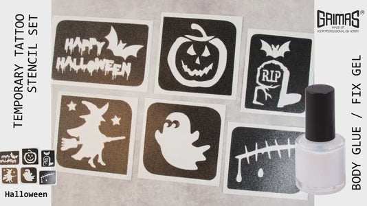 Glittertatuointi -sapluunat Halloween, 6 kpl lajitelma, Grimas