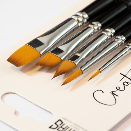 Laadukas setti sisältää viisi erilaista synteettistä sivellintä: