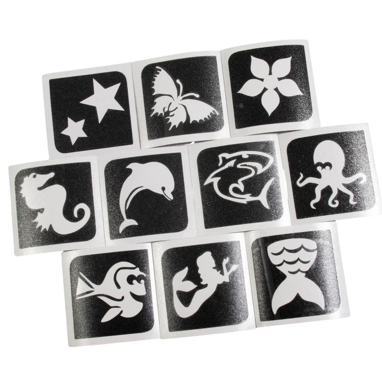Glittertatuointi -sapluunat Aqua, 10 kpl lajitelma, Grimas